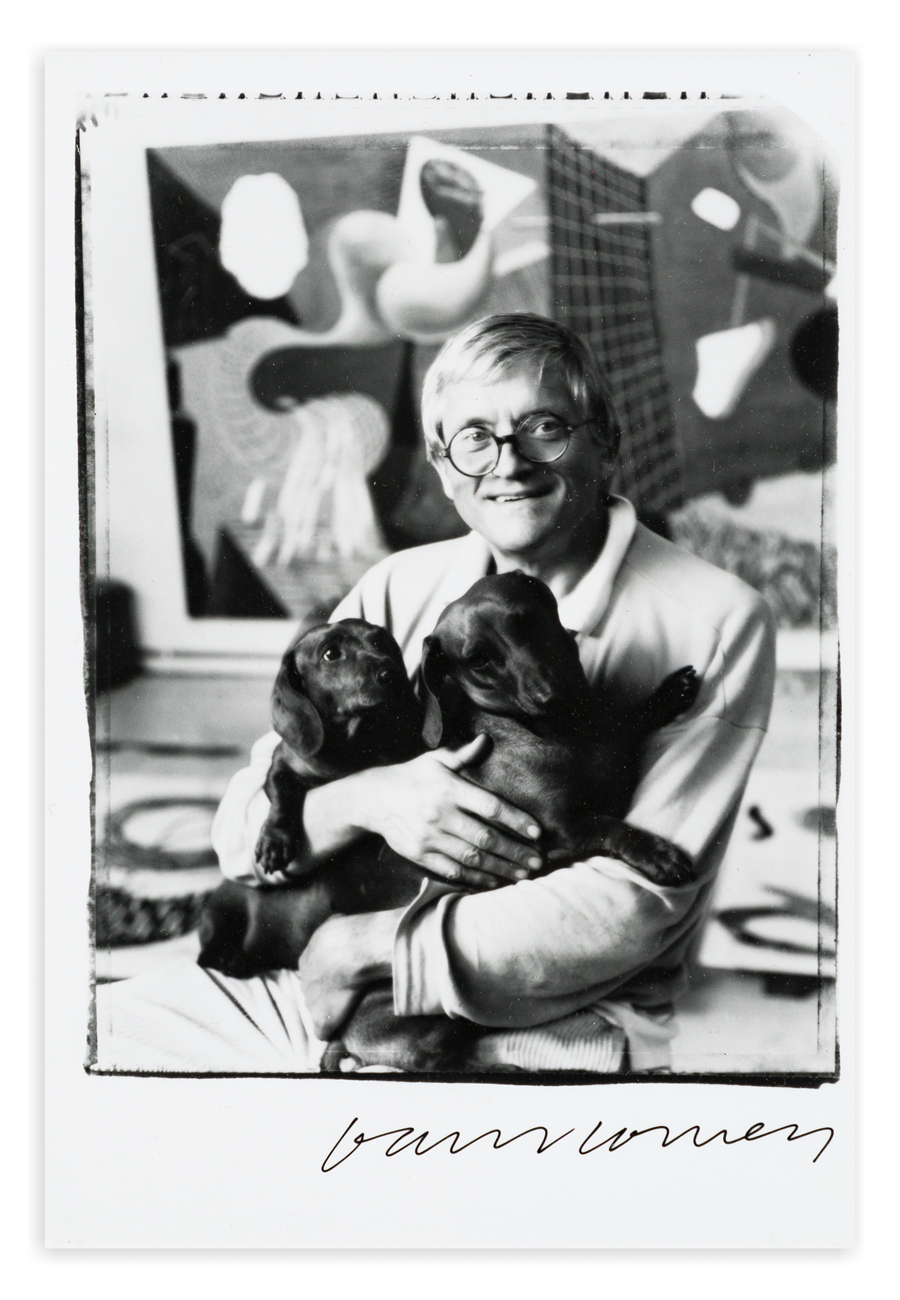 JIM MCHUGH - David Hockney with his two dogs, Stanley and Boodgie, 1994
