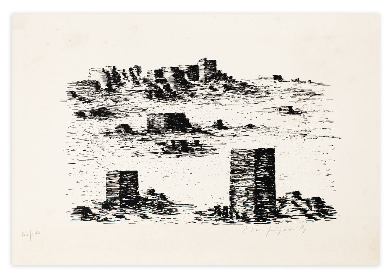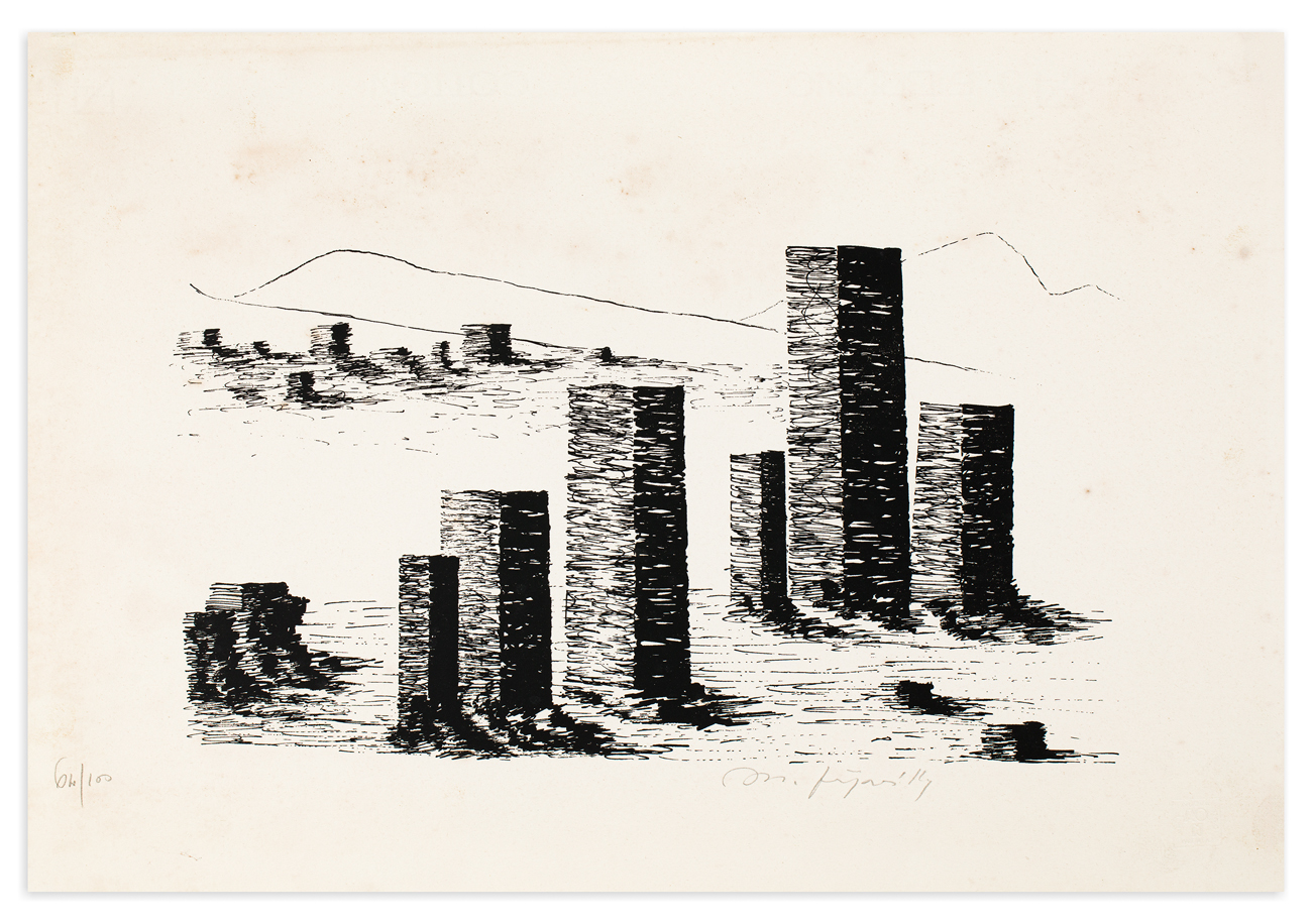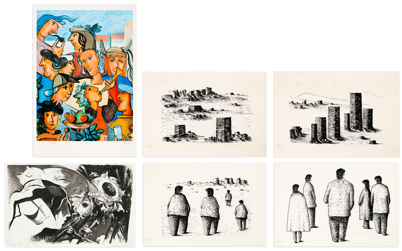 Si allegano 4 ulteriori litografie, cm 33,5x48,5 ciascuna, recanti firma indecifrata e numerazione (Esemplari 64/100) a matita al fronte