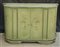 Coppia di credenze in legno laccato e dipinto a fiori di forma scantonata a due ante. Piedi a mensola. Unite ad una mensola (cm 152x92x57) (difetti e restauri)