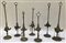 Lotto composto da sette lampade fiorentine in bronzo con coppa a tre fiamme, di
