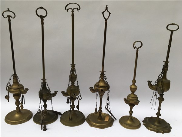Lot 1411 | Lotto composto da sei lampade fiorentine in bronzo, di cui cinque con accessori