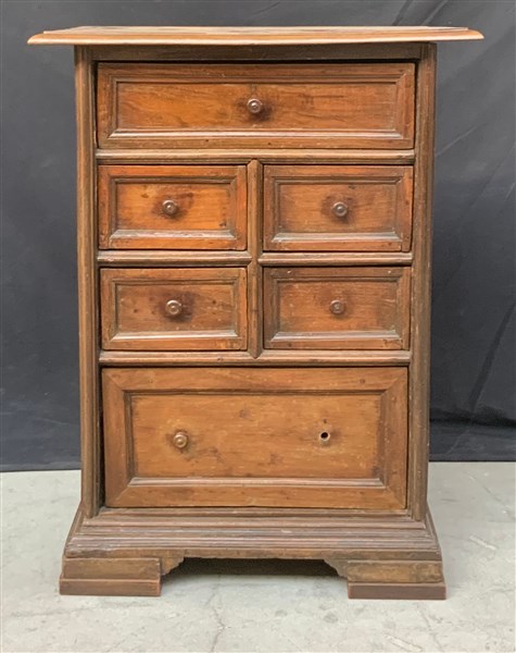 Piccolo cassettone in legno a sei cassetti, piedi a mensola. Secolo XVIII (cm 6
