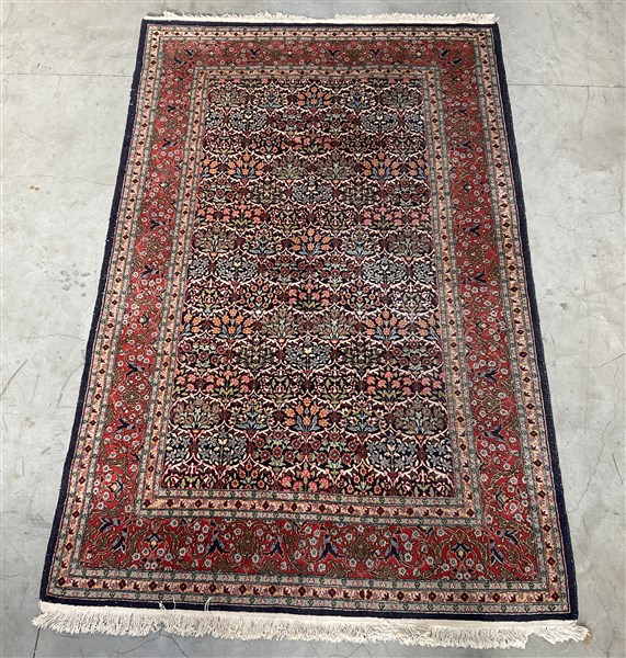 Tappeto floreale, India, secolo XX. Decoro "millefleur" a riserve (Difetti)(cm