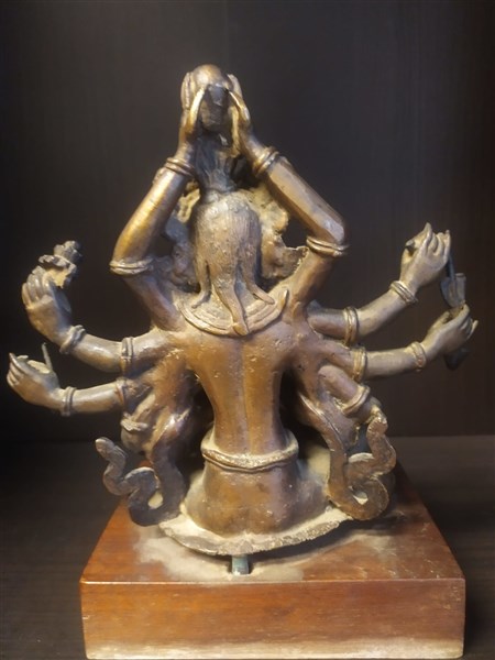 Scultura in bronzo raffigurante avalokiteshvara dalle dodici braccia, base in legno