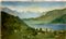 "Paesaggio lacustre" olio su tela (cm 70,5x120,5) Firmato in basso a destra.