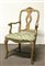 Poltrona in legno intagliato laccato e dorato, dipinta a motivi floreali, regi