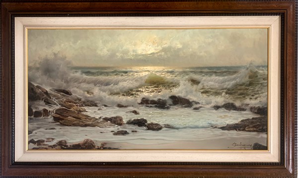 "La spiaggia" olio su tela (cm 80x100) Firmato in basso a destra. In cornice