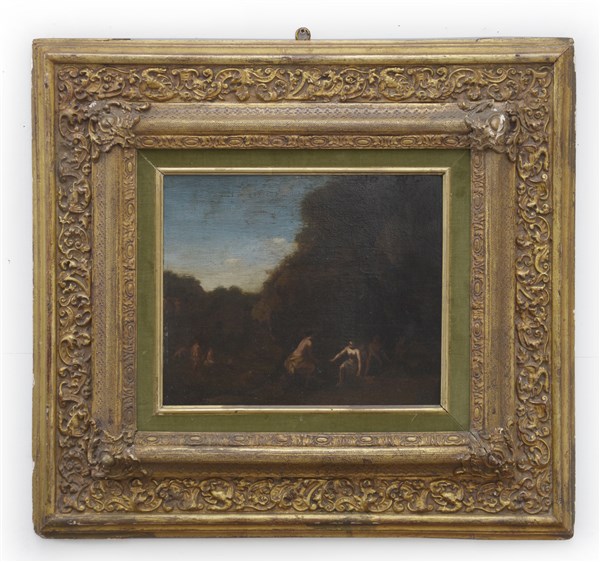 Ignoto "Le bagnanti" antico dipinto ad olio su rame (cm 30,5x36). In cornice (
