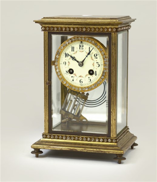 Orologio con cassa in ottone dorato e vetri. Quadrante in smalto a numeri arabi