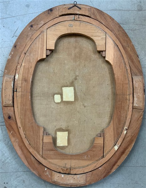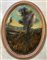 Scuola dell'Italia settentrionale del secolo XVIII "Paesaggio con figure" olio su tela ovale (cm 94x71,5). In cornice