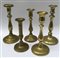 Lotto composto da cinque candelieri in ottone con base circolare. Epoche divers
