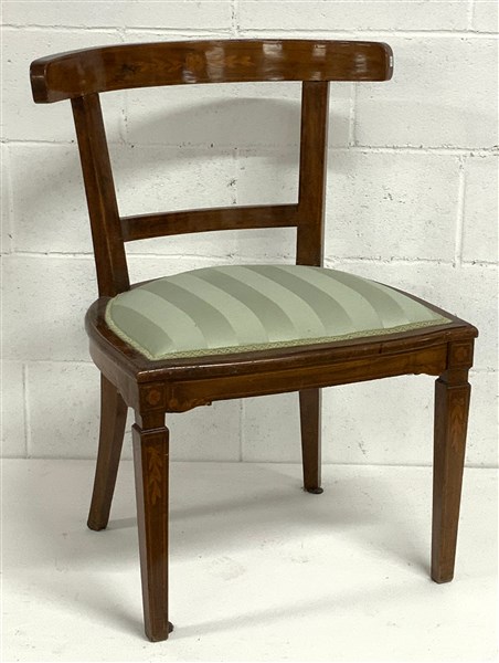 Lot 1512 | Sedia in mogano e filettato in legno chiaro schienale a giorno, intarsiata a mo