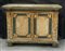 Credenza in legno laccato a finto marmo e dorato, due ante sul fronte decorate