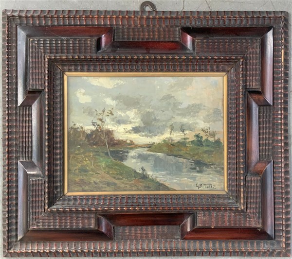 G. B. Talli "Paesaggio fluviale" olio su compensato (cm 21x28) Firmato in basso
