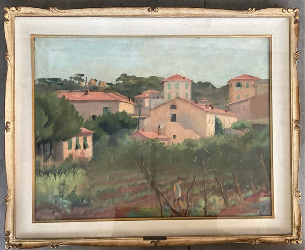 Lot 1541 | Leonetta Cecchi Pieraccini "Paesaggio con case" olio su tela cm 51x66, siglato