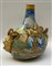 Manifattura di Castelli, fine sec XIX Fiasca da pellegrino in maiolica policroma decorata a scene classiche con amorini, anse a figure fantastiche. (h cm 32)