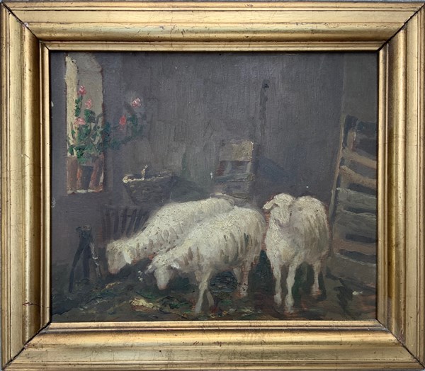 Ignoto "Pecore" olio su compensato (cm 29x35) In cornice