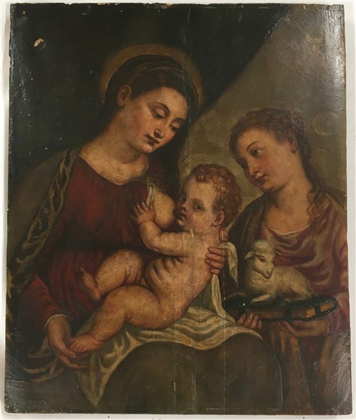 Scuola veneta del secolo XVII "Madonna che allatta il Bambino con Santa Agnese"