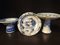 Tre alzatine in porcellana bianca e blu decorate, una con drago e le altre due