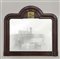 Caminiera di forma sagomata in mogano, cimasa centrata da placca in metallo dor