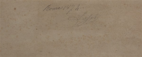 "Campagna romana" 1874, olio su carta (cm 16x40) Firmato e datato al retro. In cornice