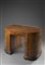 Scrivania da centro lastronata in noce e filettata, pianetto estraibile rivesti