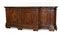 Credenza in legno con fronte sagomato a tre ante, tre cassetti nella parte inferiore, decorato a riquadri e sagomette in rilievo. Piedi anteriori a mensole, maniglie in metallo (cm 268x112x60) (lievi difetti)