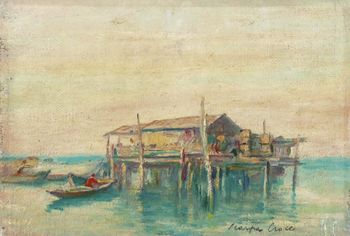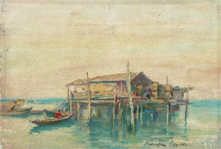 SCARPACROCE LUIGI Venezia 1901 - 1967 Casoni a Pellestrina olio su tela...