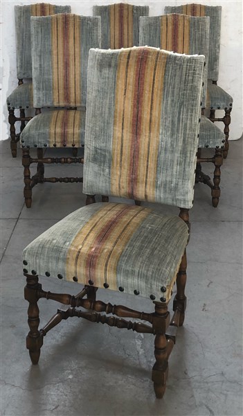 Lot 1721 | Gruppo di sei sedie in noce con gambe tornite a rocchetto rivestite in velluto