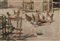 PRIVATO COSIMO Venezia 1889 - 1971 Galline nell'aia olio su cartone cm 35x50 firma in basso a destra