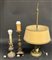 Lot 1745 | Lotto composto da due candelieri ed una lampada fiorentina in metallo e bronzo,