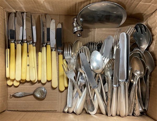 Cartone contenente parti di servizi di posate di fatture differenti (difetti)