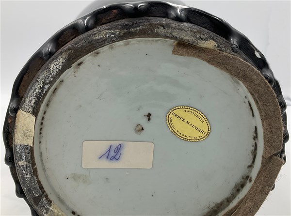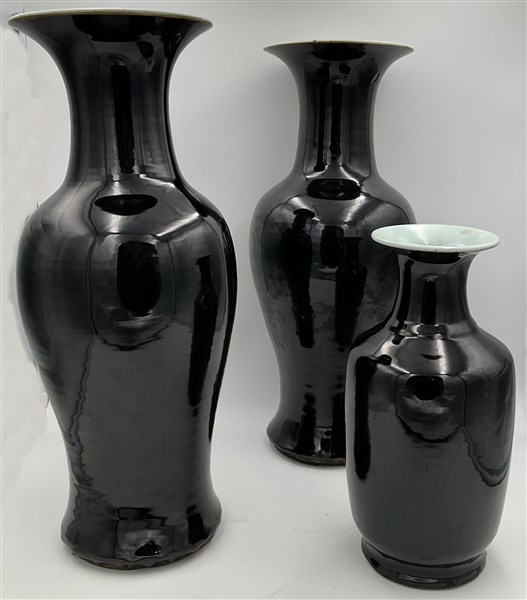 Lotto composto da tre vasi di cui due in coppia, a invetriatura nera (lievi difetti)
