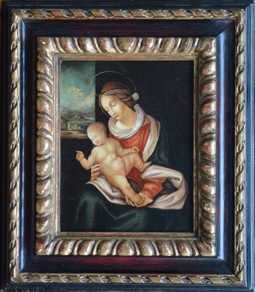 Lot 1780 | Ignoto "Madonna con Bambino" antico dipinto ad olio su tela (cm 29,5x24). In co