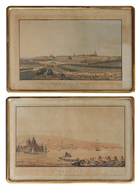 Artaria, "Venezia" e "Veduta della Villa di Vienna" coppia di incisioni acquare