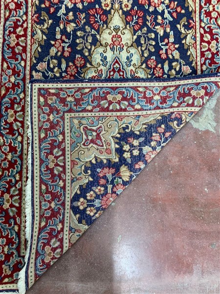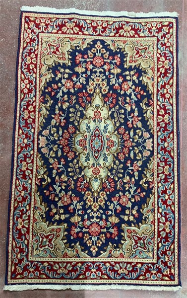 Tappeto Sarouk, Persia, secolo XX. Decoro floreale con medaglione bianco su fondo blu (cm 153x93) (lievi difetti)