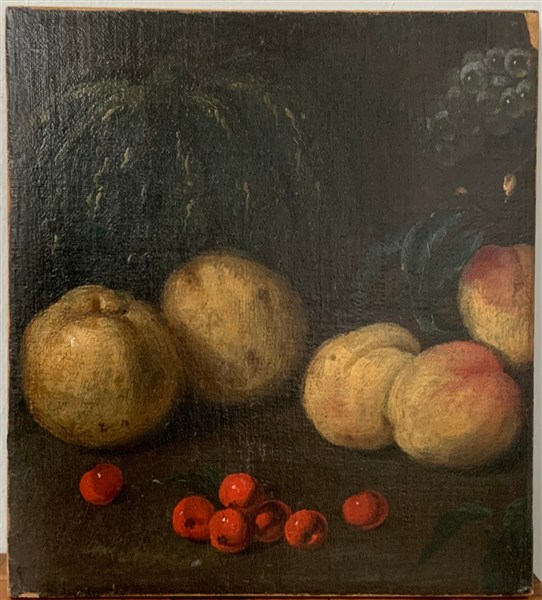 Lot 1818 | Ignoto "Composizione di frutta" frammento ad olio su tela (cm 32,5x29,5) (dife