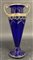Vaso biansato in vetro blu cobalto montato in metallo e decorato a nastri e fes