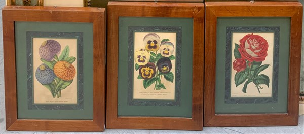 Gruppo di sei stampe francesi a colori raffiguranti fiori, in cornice (cm 22x14.5)