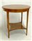 Tavolino da centro lastronato e filettato in noce, gambe dritte e rastremate riunite da pianetto sagomato (cm 65x68) (lievi difetti)