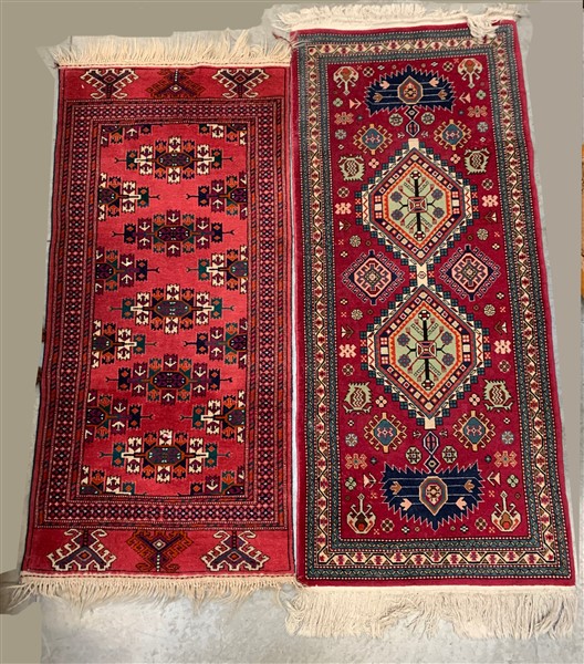 Lotto di due tappeti orientali: uno Yomut, Turkestan occidentale, secolo XX (cm 128x60) ed uno caucasico di moderna manifattura (cm 142x62)