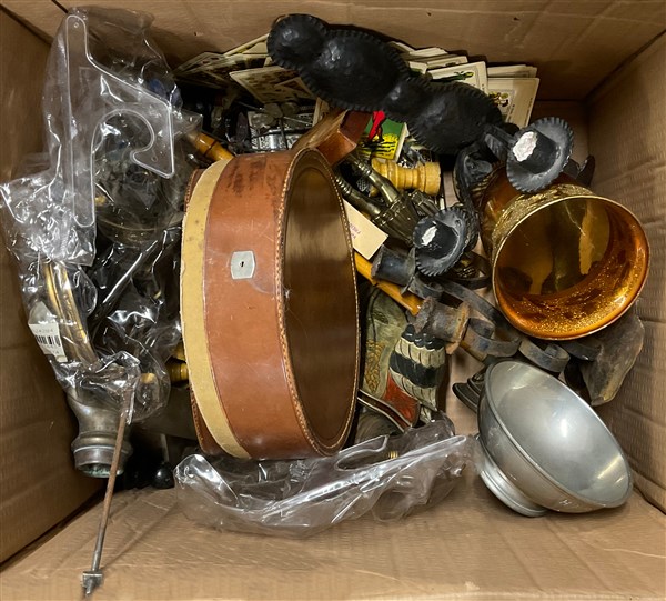 Cartone contenente numerosi oggetti di materiali e per usi differenti (difetti)