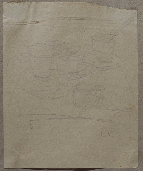Lorenzo Viani (Viareggio, 1882 - Ostia, 1936) TAZZINE, 1926-27 Matita su carta, cm. 15,5x12,8 Sigla in basso a destra: LV. Autentica di Enrico Dei su foto.