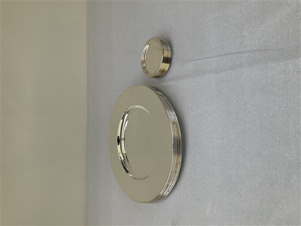 Lotto composto da sei sottopiatti in metallo argentato (d cm 31) e dodici sottobicchieri analoghi (d cm 10) (lievi difetti)