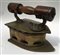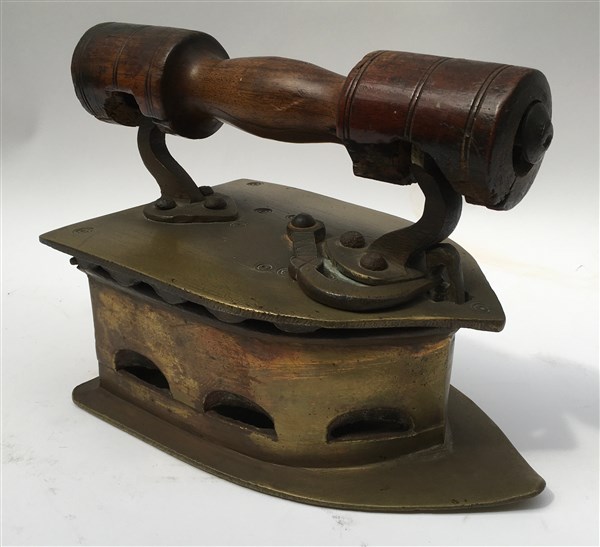 Ferro da stiro a carbonella con presa in legno tornito. Secolo XIX (cm 28,5x10x