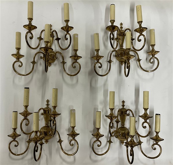 Lot 1972 | Gruppo di quattro applique con cinque bracci a volute in metallo dorato (h cm 3