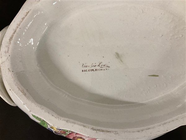 Manifattura Società Ceramiche Richard, zuppiera biansata in ceramica dipinta in