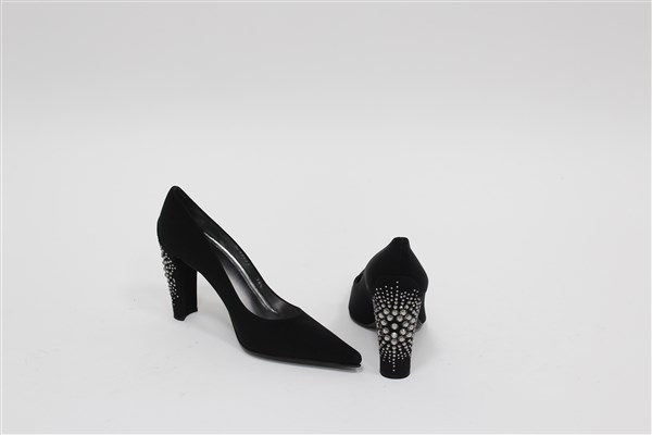 Black crêpe high-heeld pumps, the heel decorated with star shaped rhinestones (tg. 38.5) (minor signs of wear)