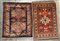 Lotto di due tappeti Azeri, Caucaso, secolo XX. Decori geometrici uno su fondo blu ed uno su fondo rosso (cm 86x61; cm 80x61)