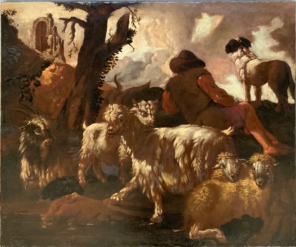 Lot 2021 | Seguace di Domenico Brandi "Pastori e armenti" coppia di antichi dipinti ad oli